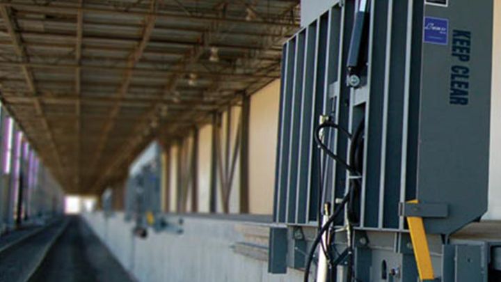 The Serco HRL hydraulic rail leveler is specially designed for rail car operations and is an ideal solution for increasing efficiency during rail car-loading operations. It features the same vertical storing design and safety features as the VSL Series vertical storing dock leveler: Runoff guards protect the forklift and operator during loading and unloading; an audible alarm sounds whenever the HRL hydraulic rail leveler is stopped between stored position and loading range; and the leveler stops instantly when the lower or raise button is released. And here’s an added bonus: Vertical storing dock levelers offer a tight seal around the doorway, which curbs potential entry and theft.