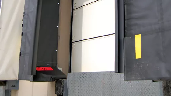 The Serco HINGE GUARD™ Dock Shelter System closes off trailer hinge gaps without restricting access to the full width of the trailer interior.