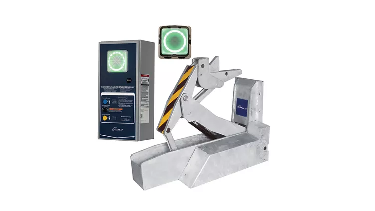 SL Powered Vehicle Restraint provide automatic push-button activation with advanced electronics and standard LED communication systems for increased dock safety and security. Driveway or wall-mounted, SL Series powered vehicle restraints engage the rear impact guard of a vehicle and hold it in place during the loading and unloading process. The restraint is raised and lowered automatically at the touch of a button, and the exclusive sensor bar automatically senses and communicates the contact between the restraint and the trailer’s rear impact guard. The programmable logic controller (PLC) offers more flexibility to meet the evolving needs of your facility. This restraint will auto-reverse if no rear impact guard contact is made, signaling dock workers via the LED lights to ensure maximum operational safety.